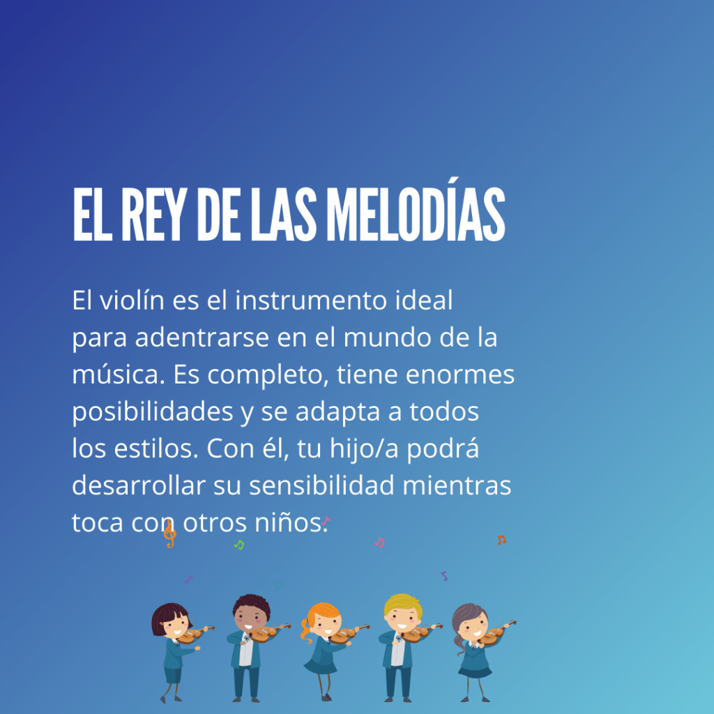 Una clase semanal individual de 30 minutos para aprender a tocar un instrumento (violín, piano, guitarra, ukelele, mandolina y contrabajo).
