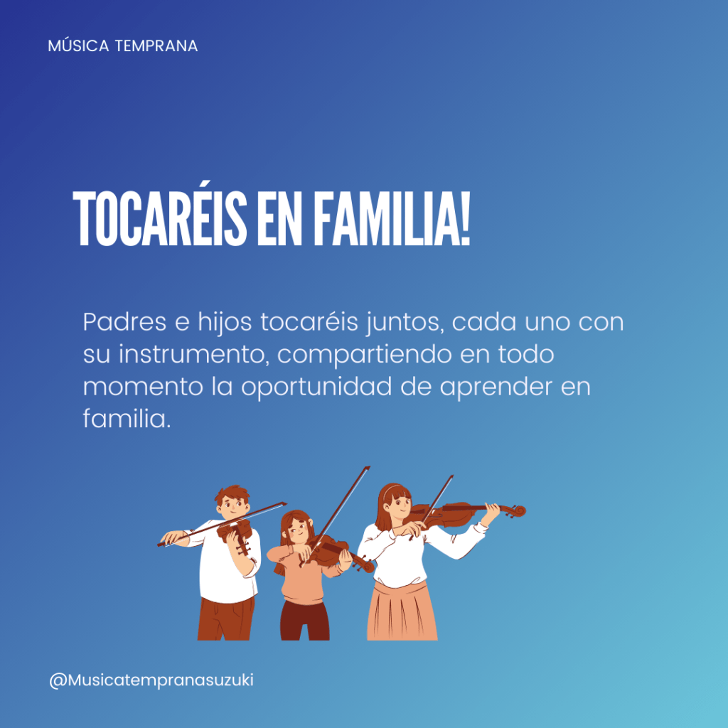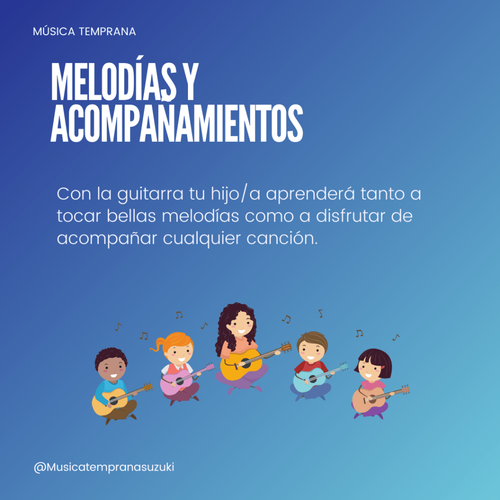 Una clase individual semanal de 20 minutos* acompañado de un adulto y otra clase en grupo semanal de 30 minutos* con el Método Suzuki.