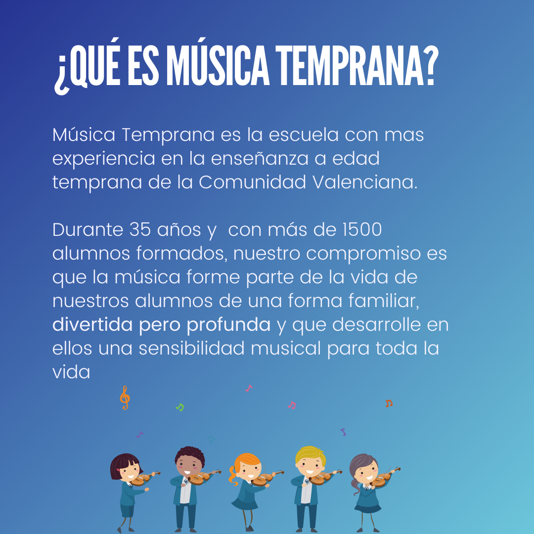 Música Temprana es la escuela de música pionera en la aplicación del Método Suzuki en la Comunidad Valenciana. Con más de 35 años de experiencia docente y más de 1.500 alumnos que han pasado por nuestras aulas, hoy gozamos del orgullo de tener en nuestra escuela padres que en su día fueron nuestros alumnos. Nuestros primeros niños….. de nuevo con nosotros, ahora, con sus hijos.