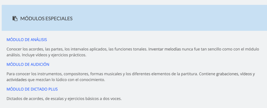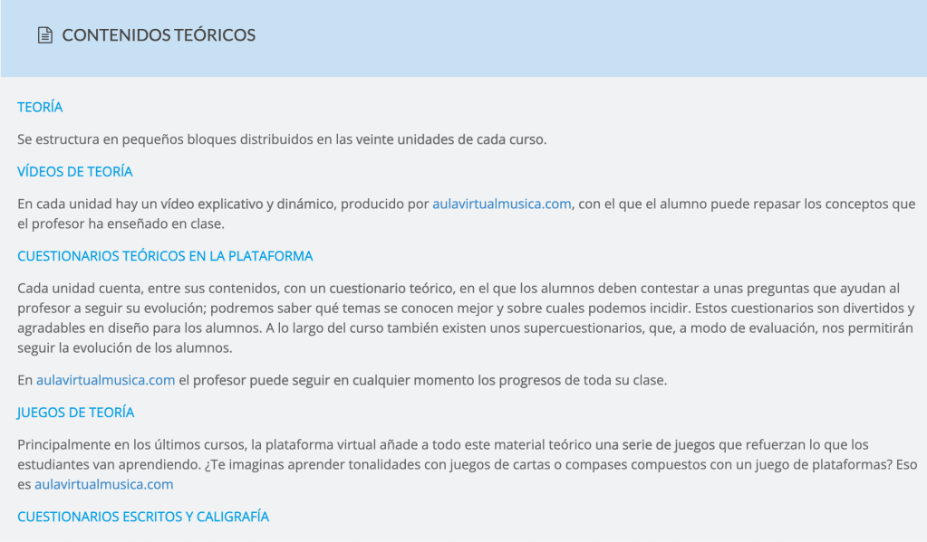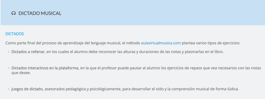 El uso del método Aulavirtualmusica está limitado al profesorado y alumnado de Escuelas de Música y Conservatorios, no para particulares.